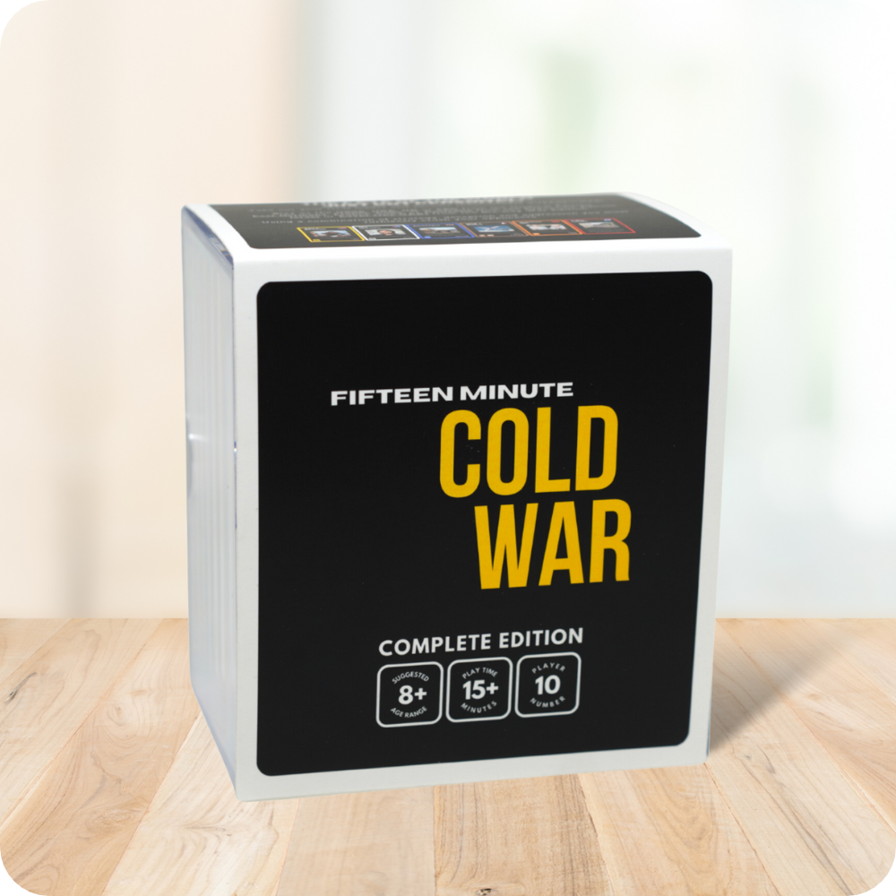 The Complete Edition of 15 Minute Cold War deck contains 250 Premium Quality, matte cello glazed cards that allow up to 10 players to fight it out for the title of Superpower. The game comes in an Ultra Pro hard case inside a full colour printed sleeve.