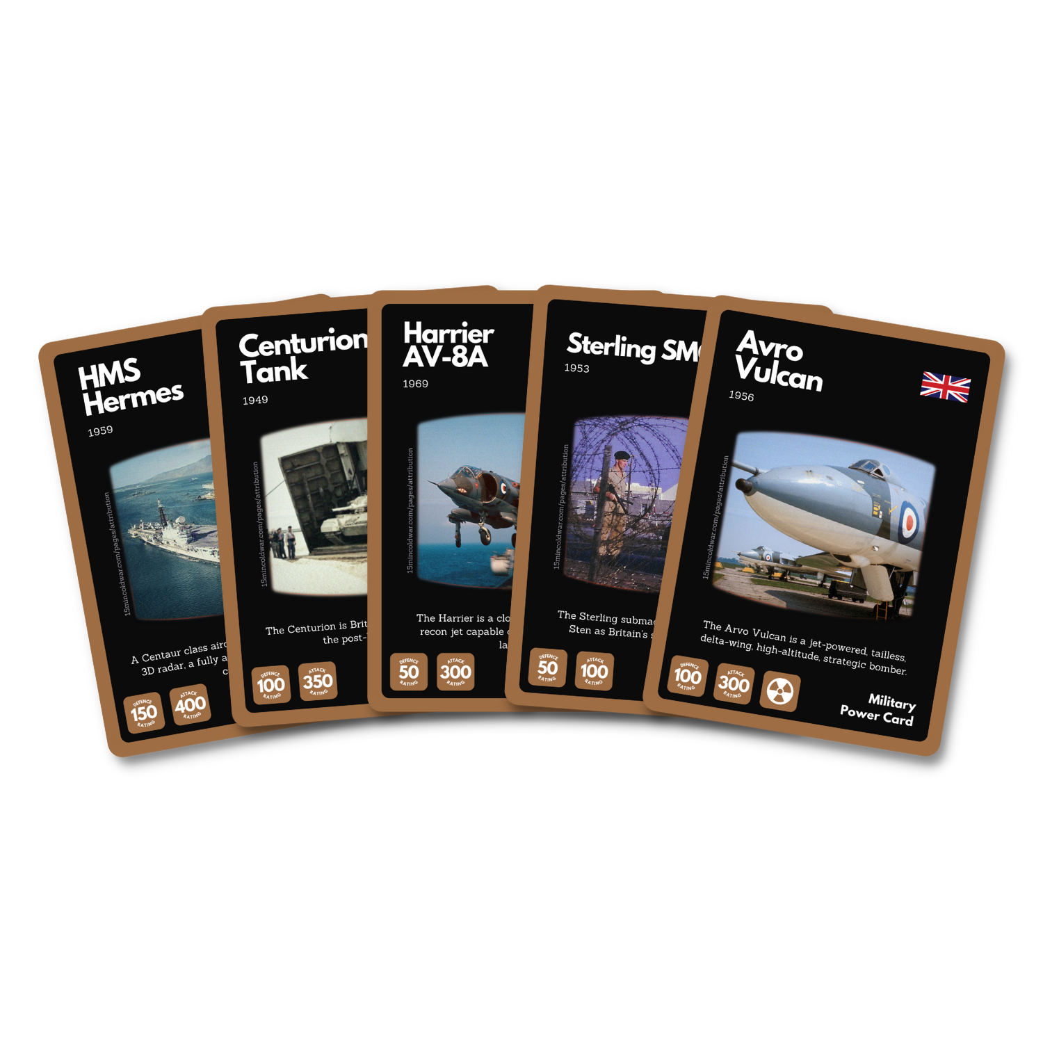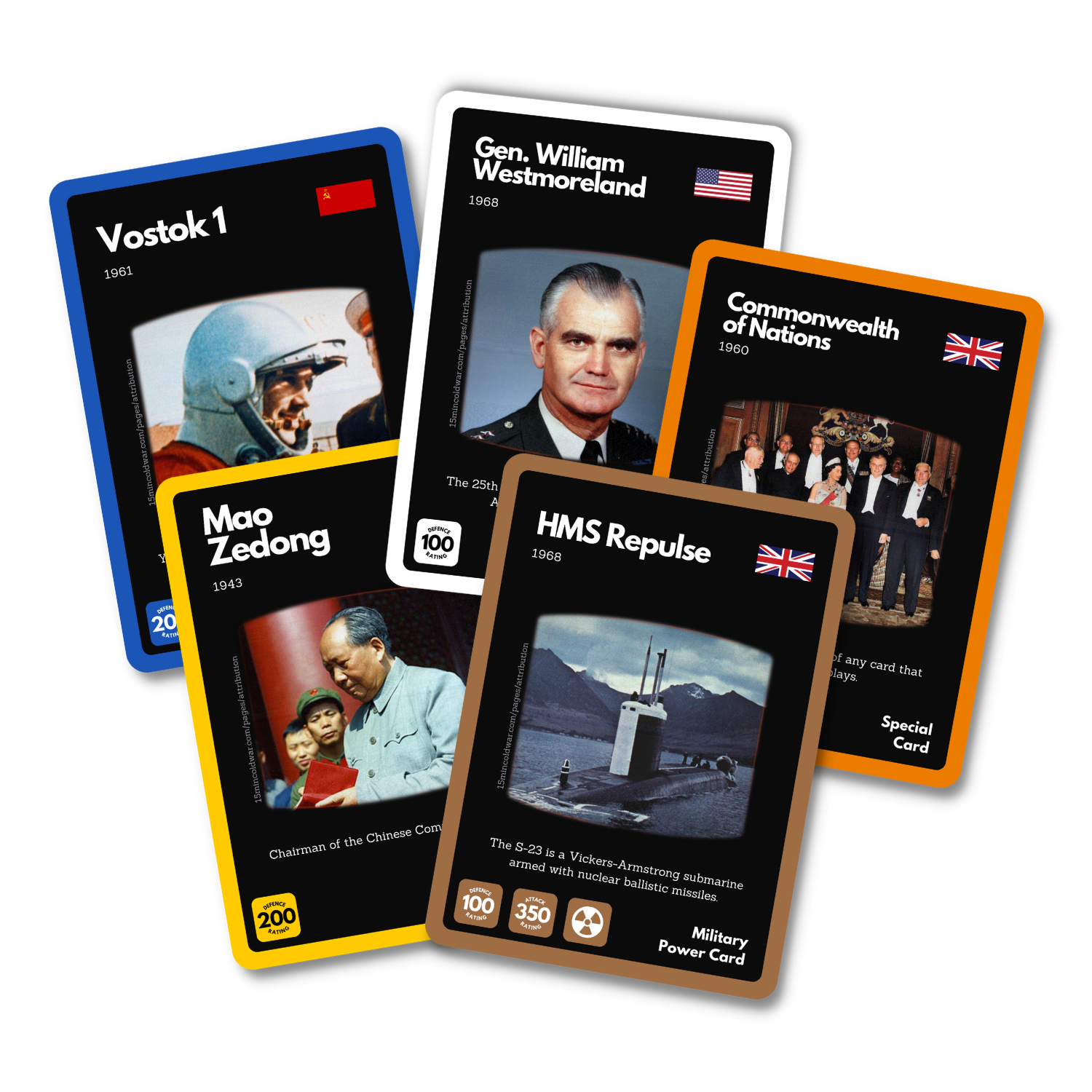 It's time to warm up the Cold War! Choose your own 25 card premium deck from Krushchev's Soviet Union, the United States of America under the guidance of JFK, Harold Wilson's United Kingdom or the People's Republic of China under the chairmanship of Mao Zedong.